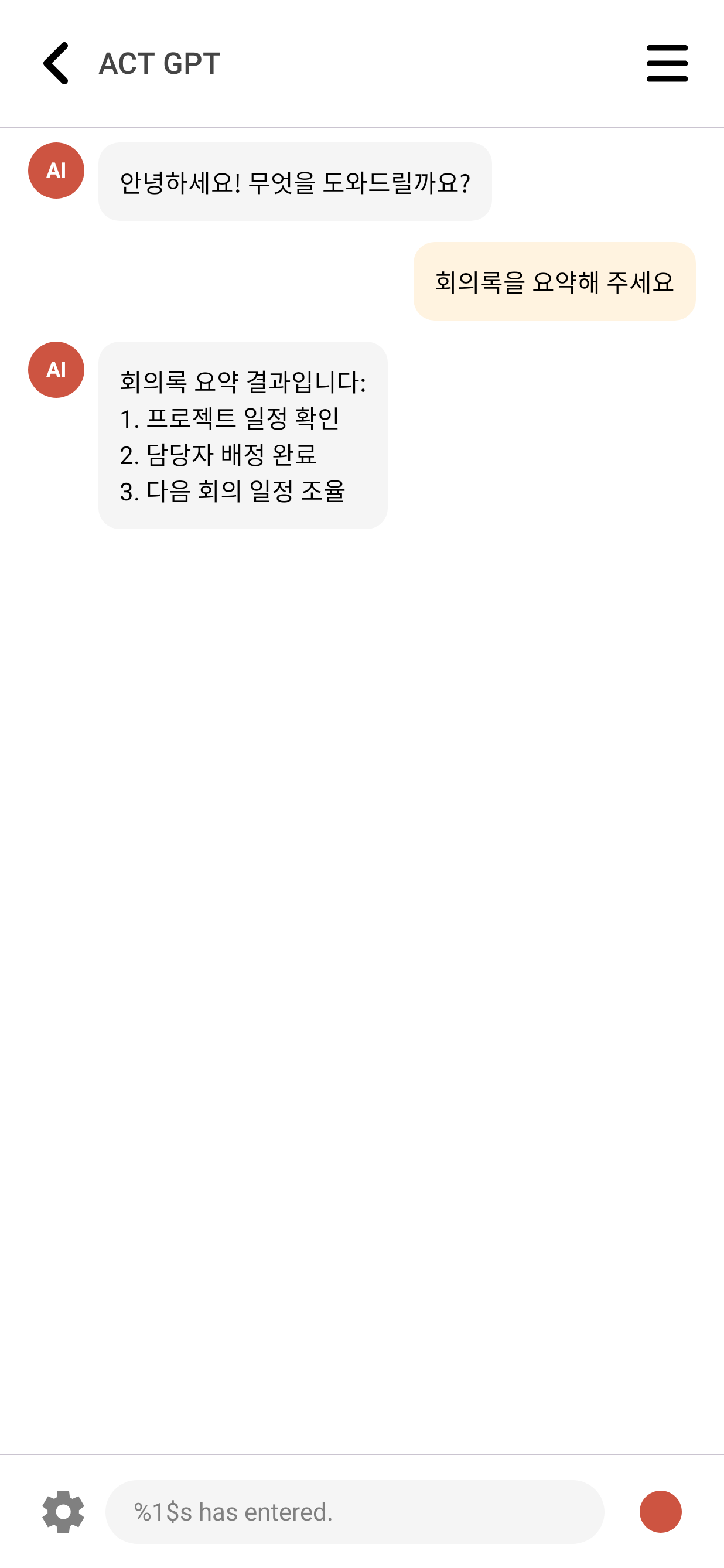 ACT의 할일 관리는 단순한 To-Do 리스트를 넘어, 대화 맥락에서 자동으로 할일을 생성하고, 진행 상황을 시스템이 추적합니다.