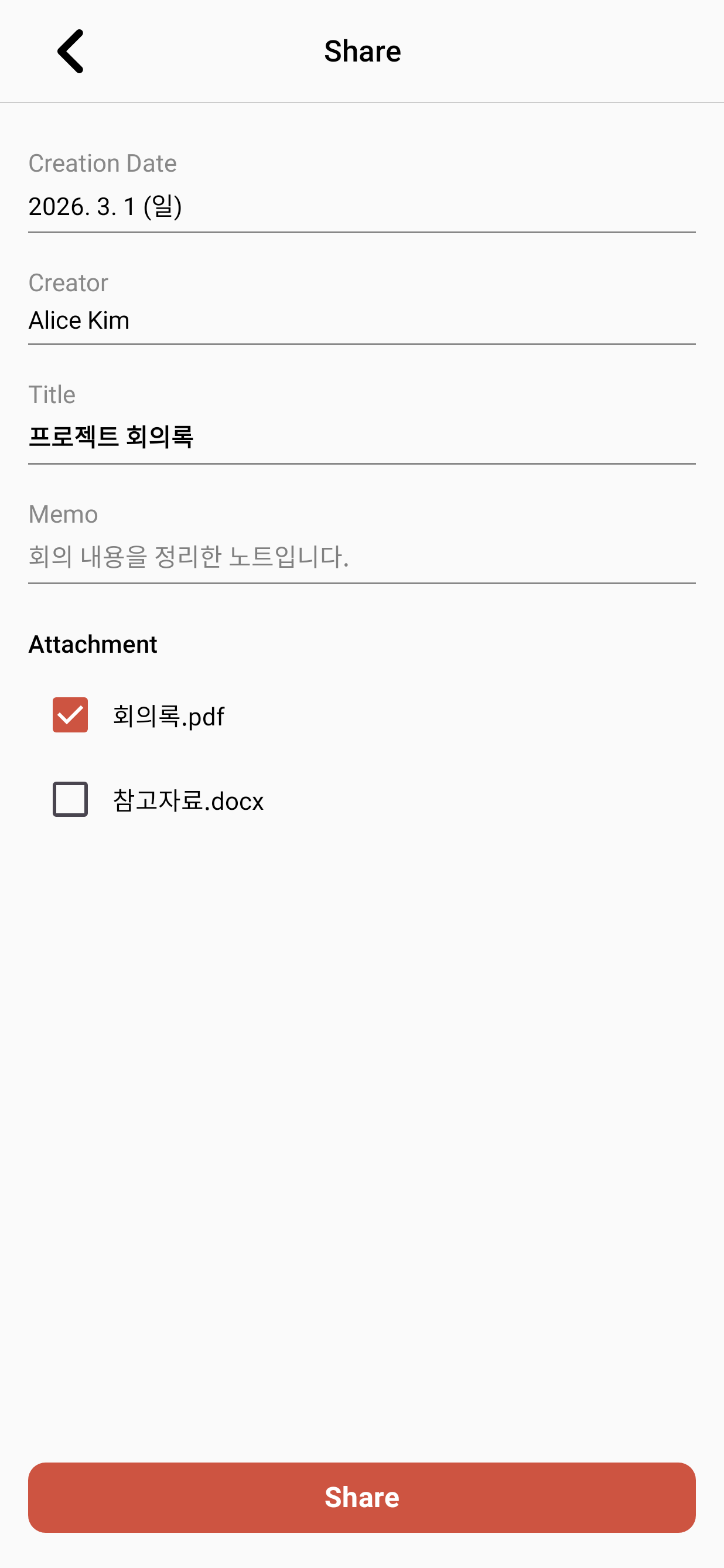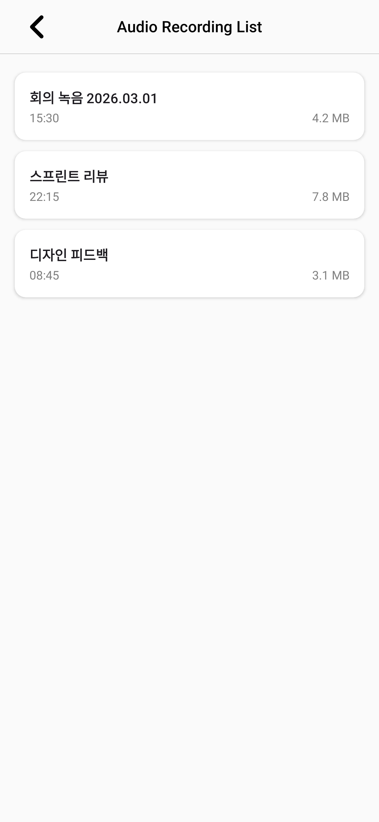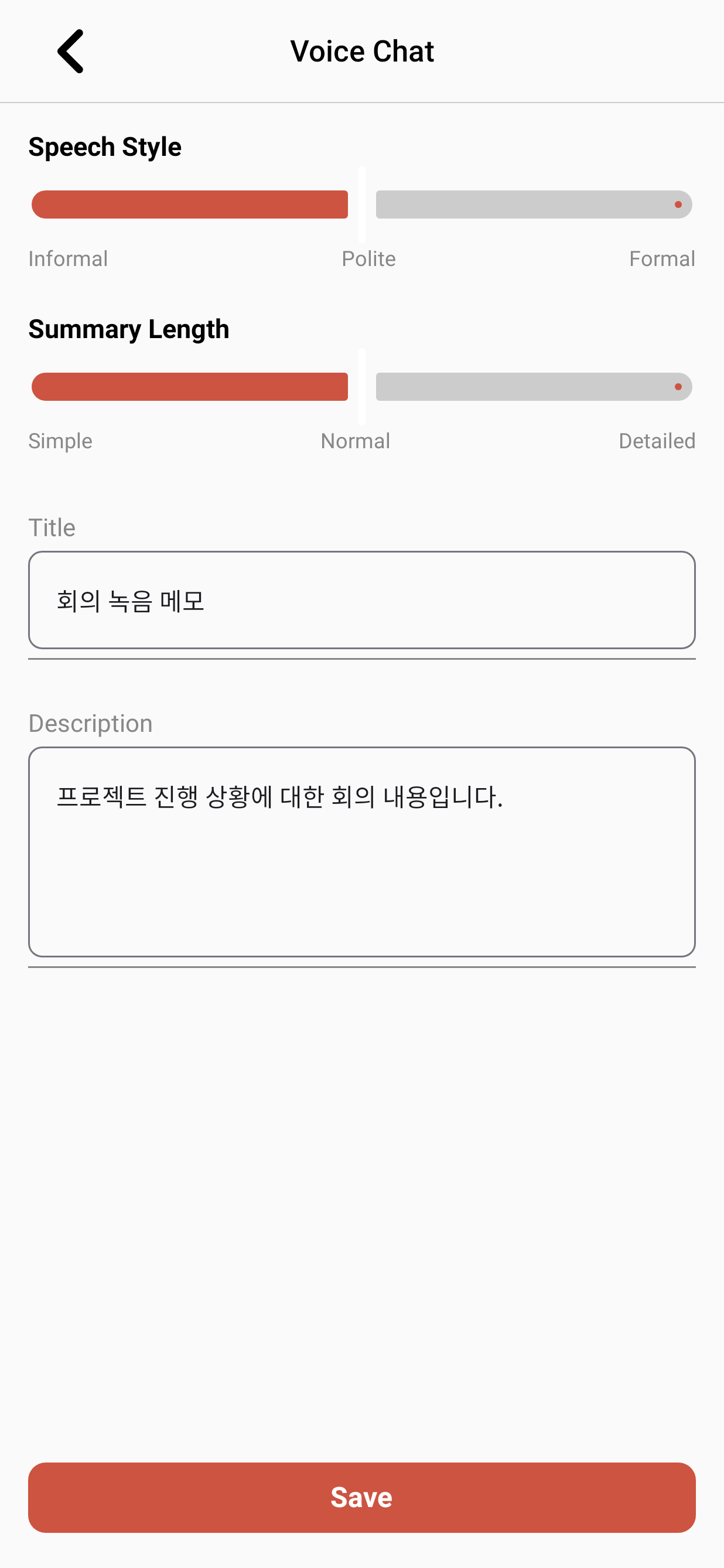 회의 내용, 보이스 메모 등의 음성 녹음을 OpenAI Whisper를 통해 자동으로 텍스트로 변환해 줍니다. 변환 시 문체(격식/비격식)와 요약 길이(간략/상세)를 조절할 수 있어, 공식 회의록부터 간단한 메모까지 용도에 맞는 결과물을 생성합니다.