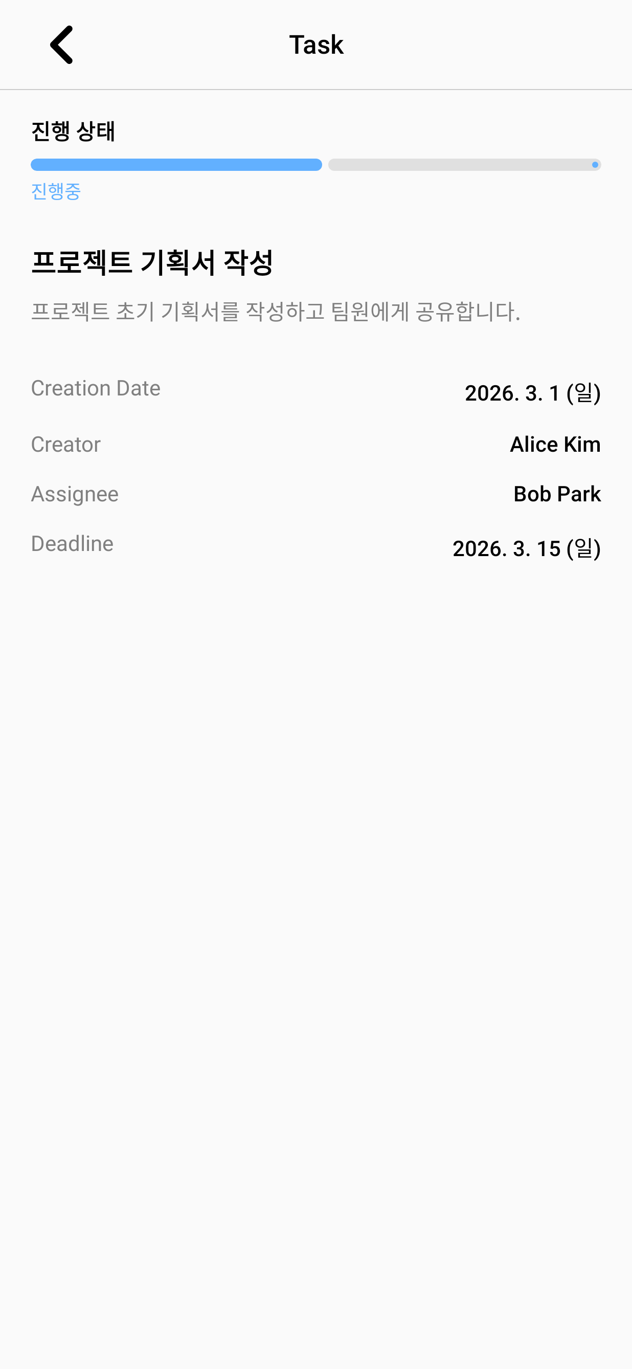 - 담당자 지정 & 마감일 — 각 태스크에 담당자와 마감일을 설정할 수 있습니다.