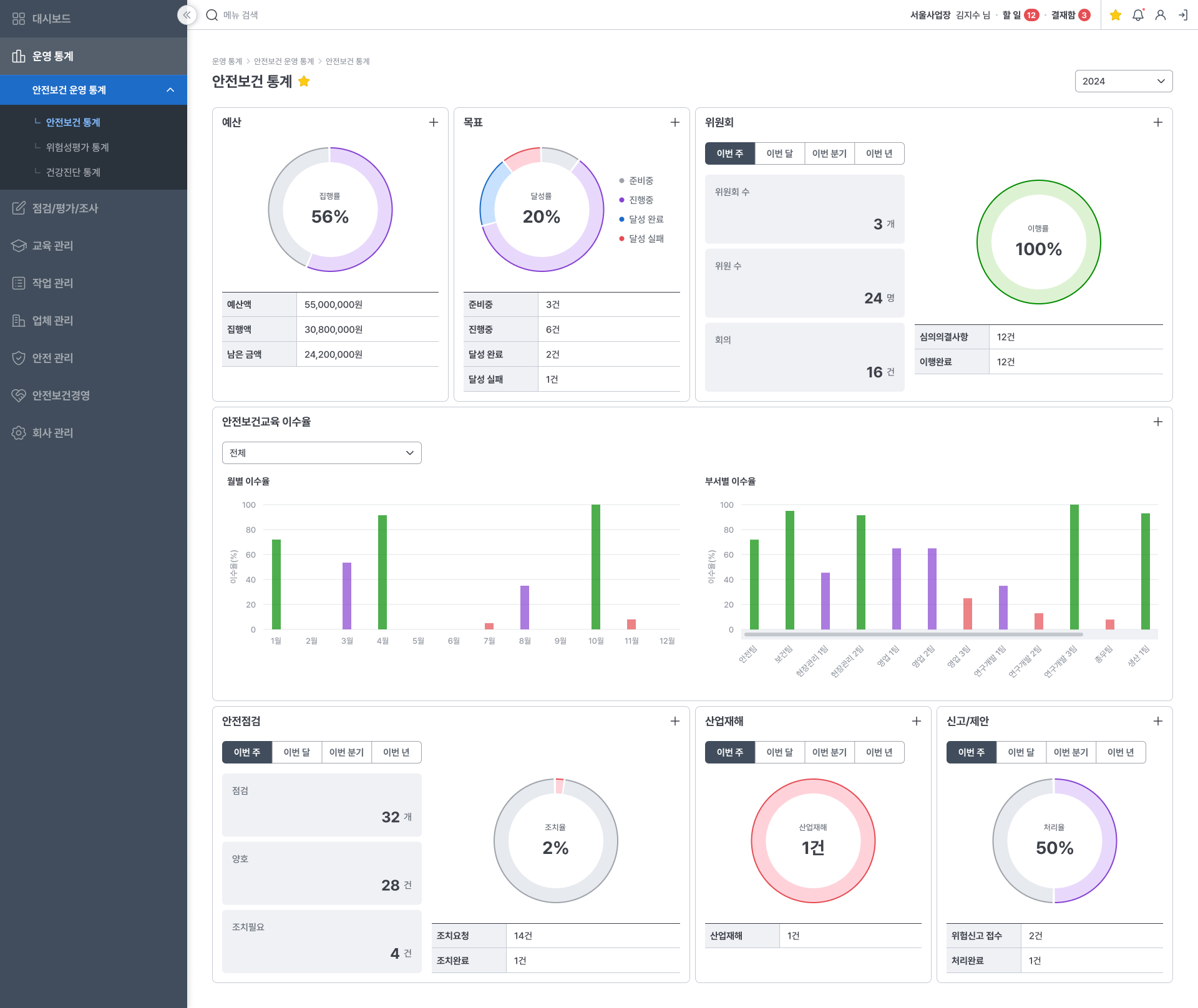 1. 운영 통계 대시보드 — 안전보건 현황 한눈에