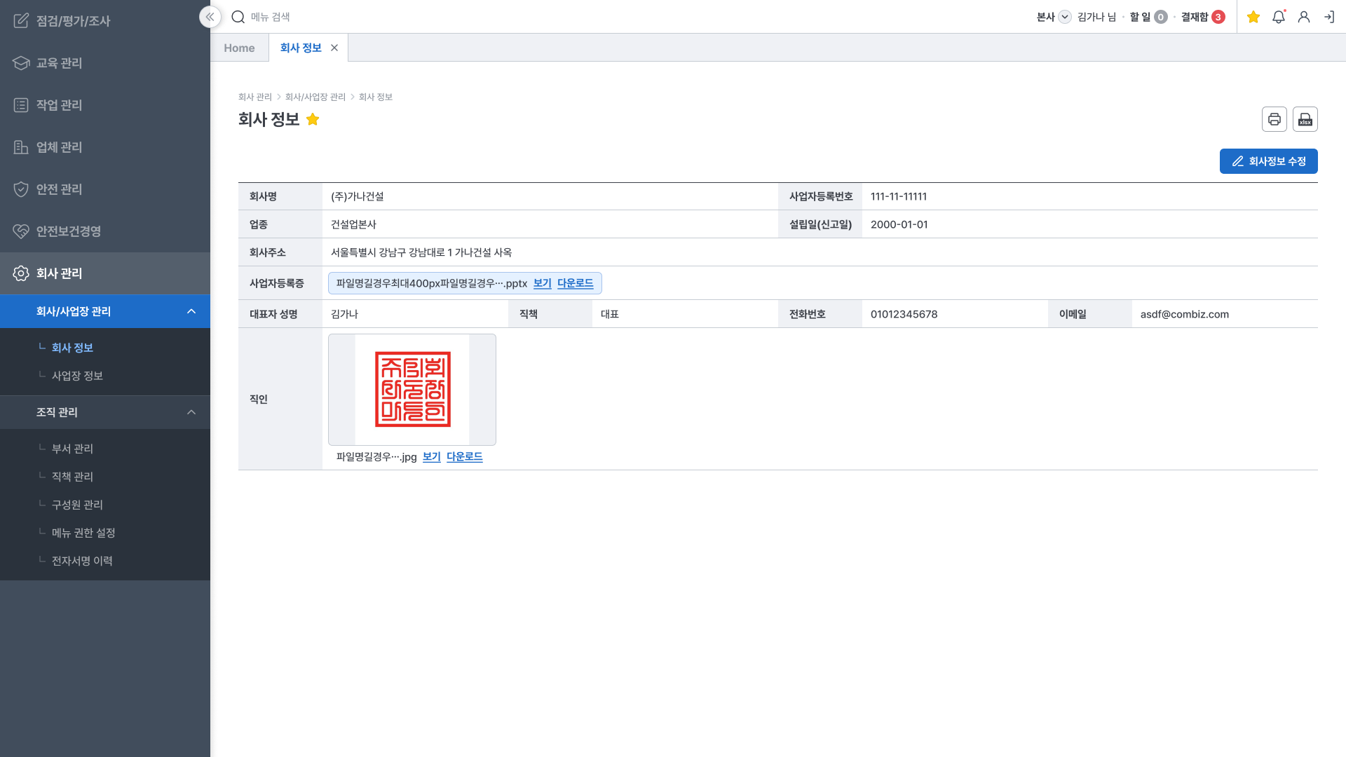 COMBIZ Safer — 산업안전보건 통합관리 플랫폼