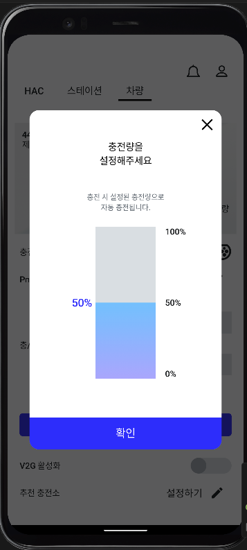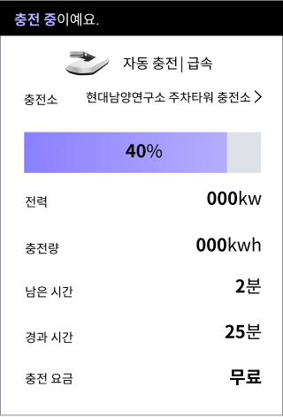 충전이 진행되면 프로그레스 바와 함께 실시간 충전 상태가 표시됩니다. 설정한 충전량(예: 80%)에 도달하면 자동으로 충전이 중지됩니다.