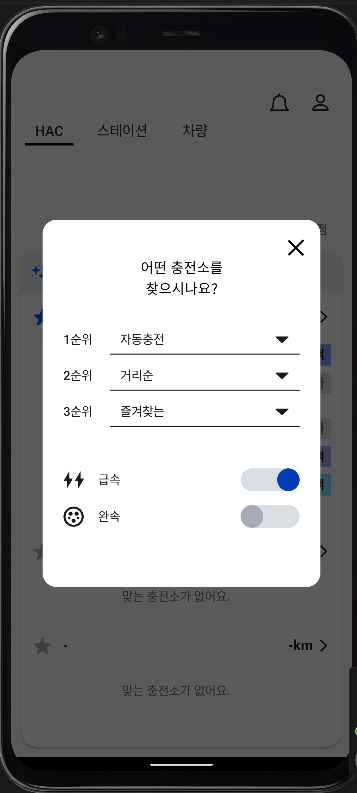 추천 충전소 기능은 사용자의 위치, 차량 충전 어댑터 유형, 충전기 가용 상태를 종합적으로 분석하여 최적의 충전소를 자동으로 제안합니다. 필터 설정으로 선호하는 충전 방식과 충전 속도를 지정할 수 있습니다.