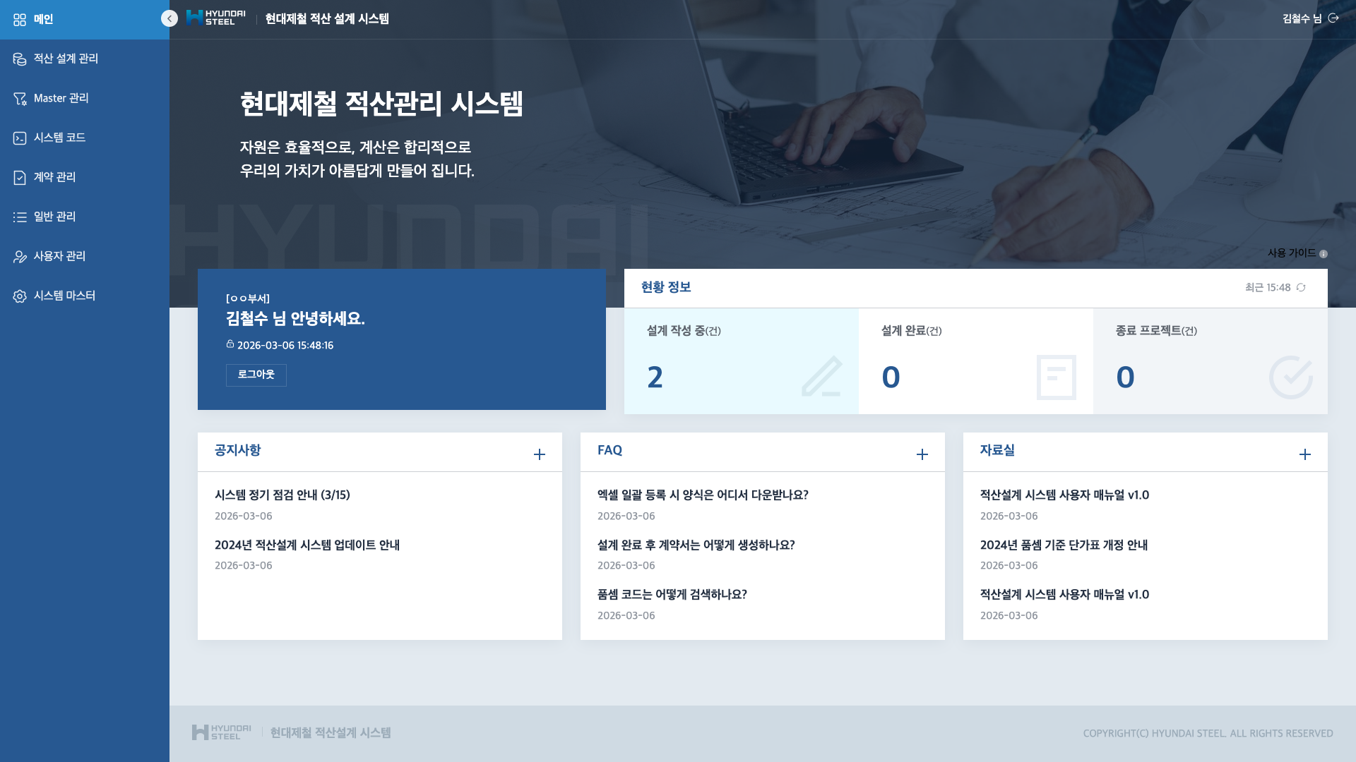 적산설계 시스템 — 건설·설비 공사 원가 산출 통합 관리