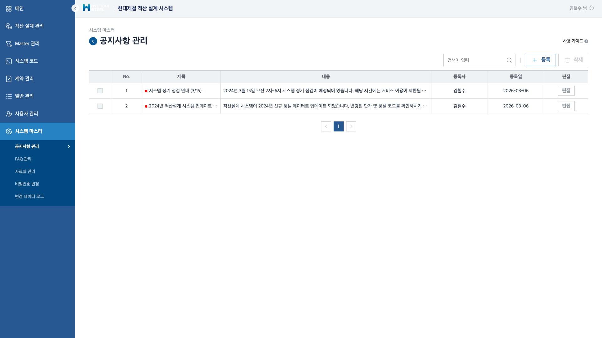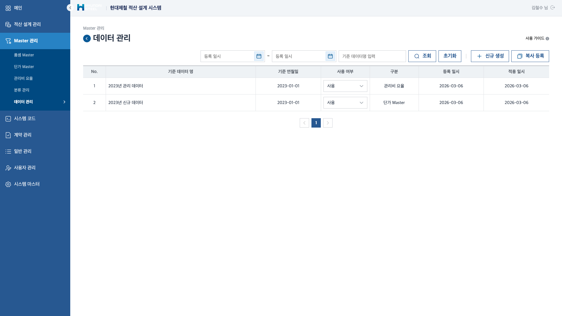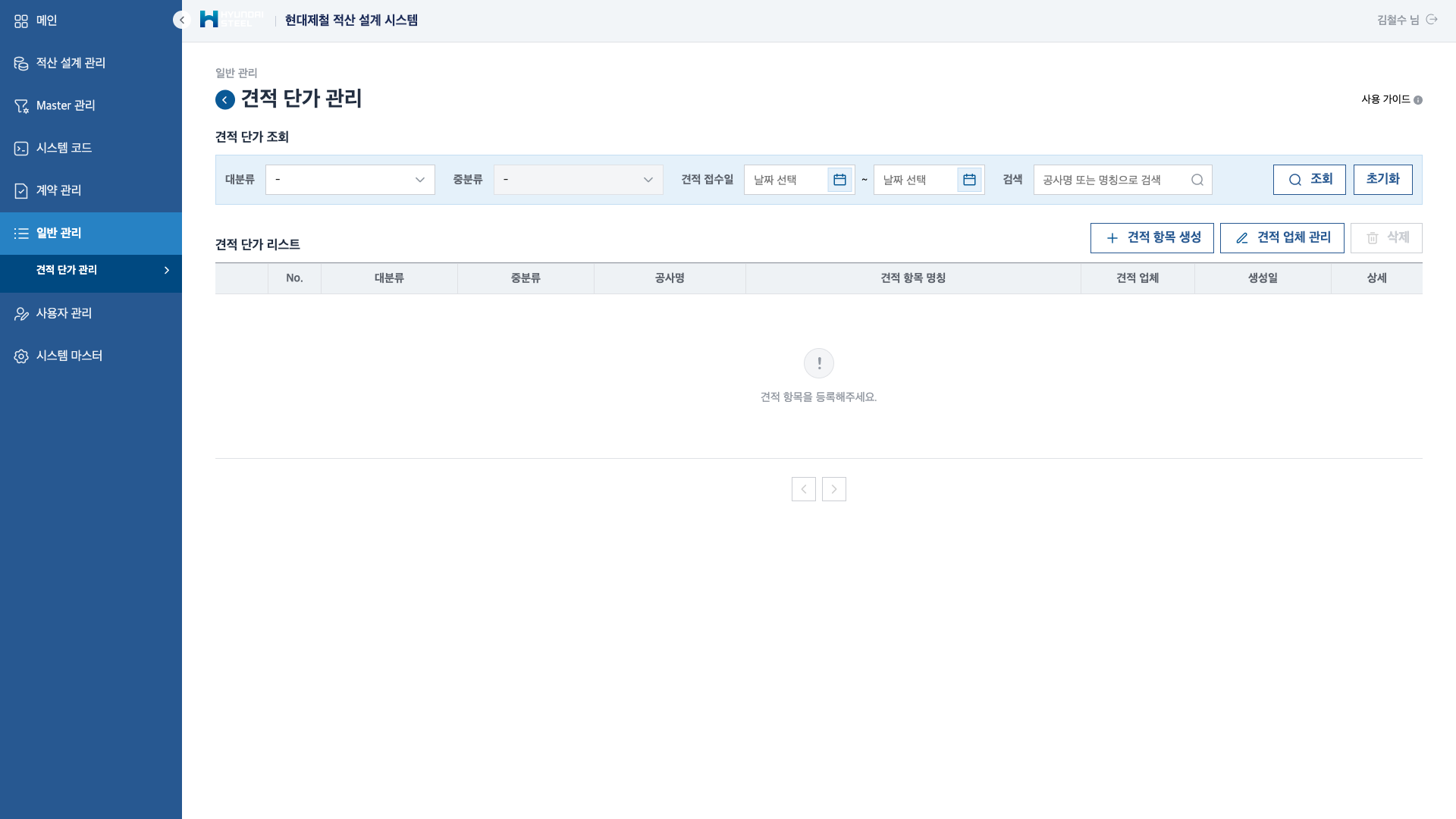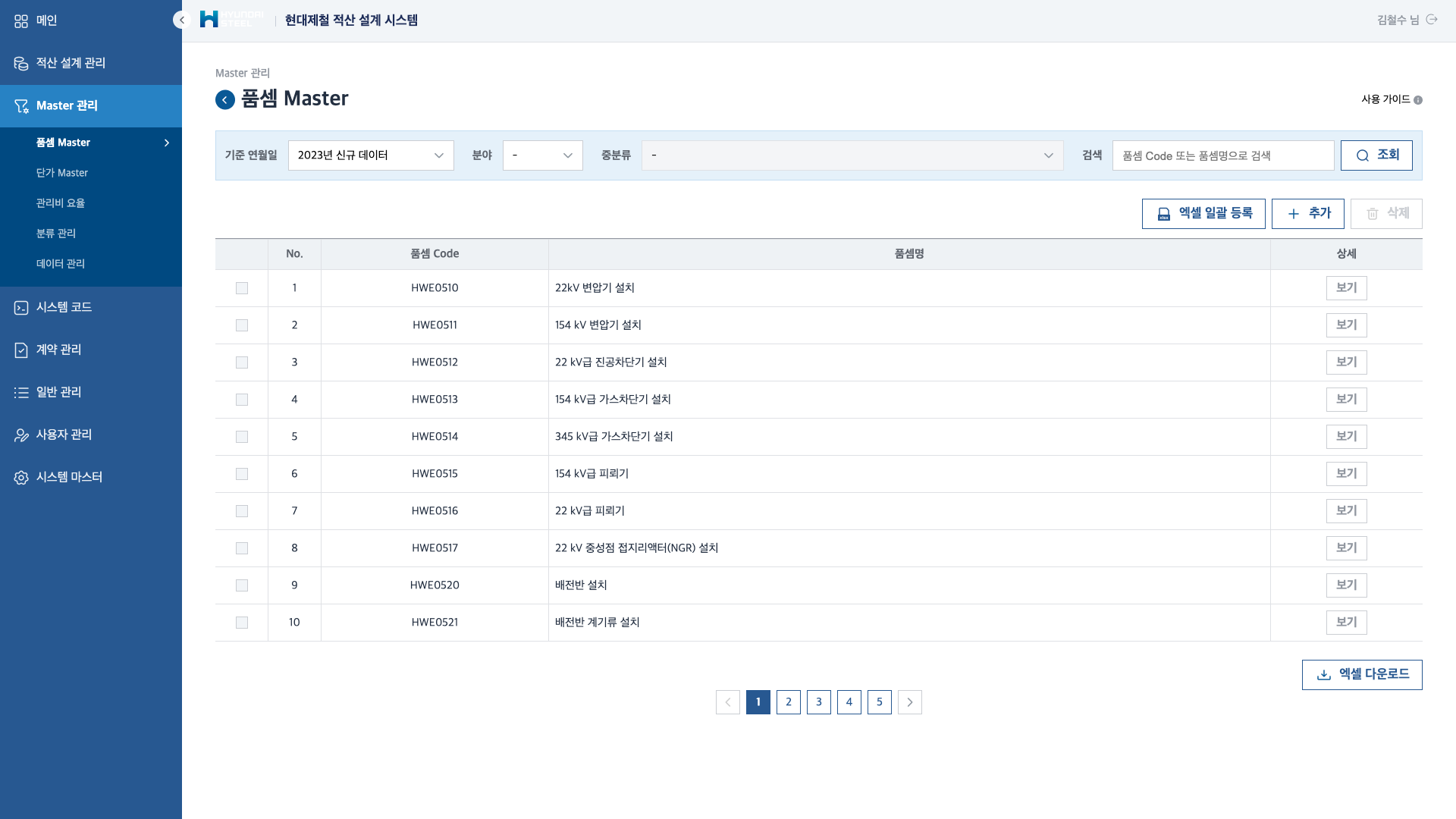 Master 관리 — 품셈 Master