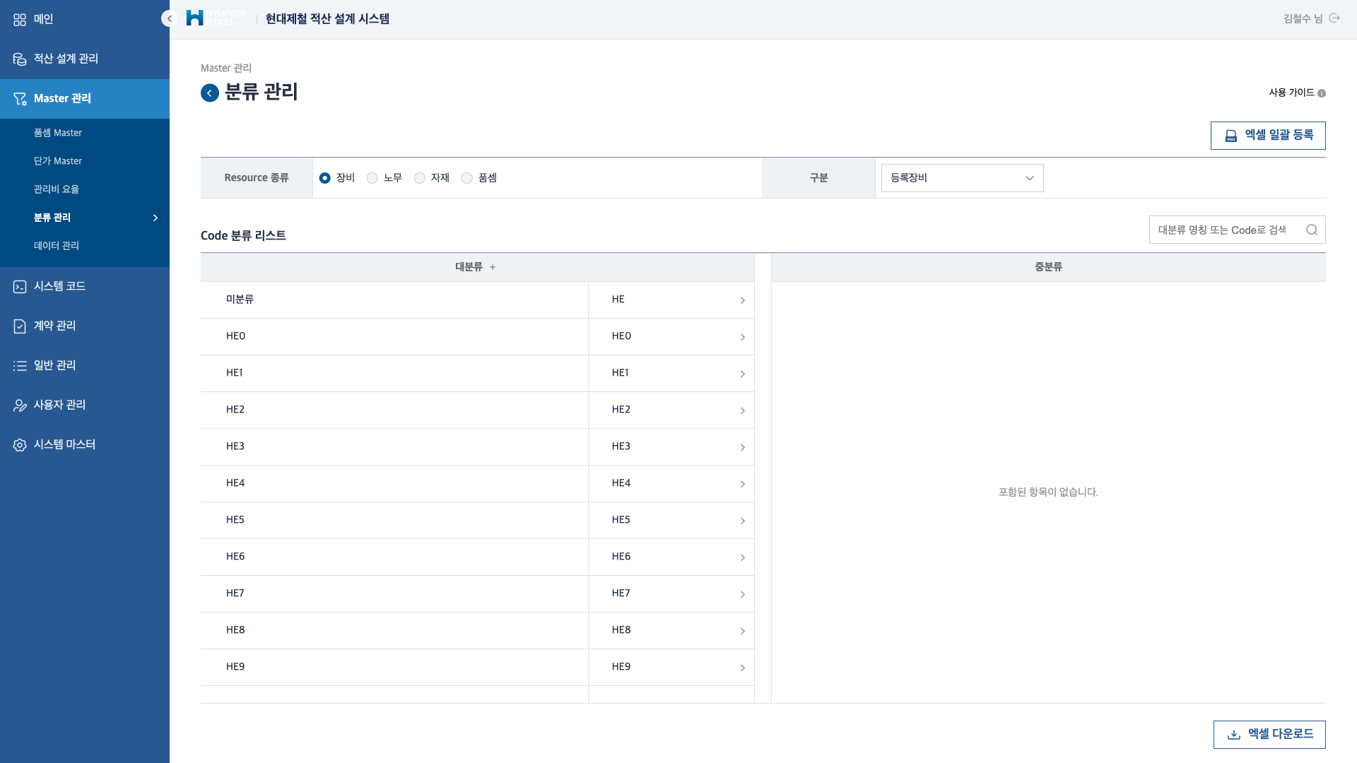 Master 관리 — 분류 관리 & 데이터 관리